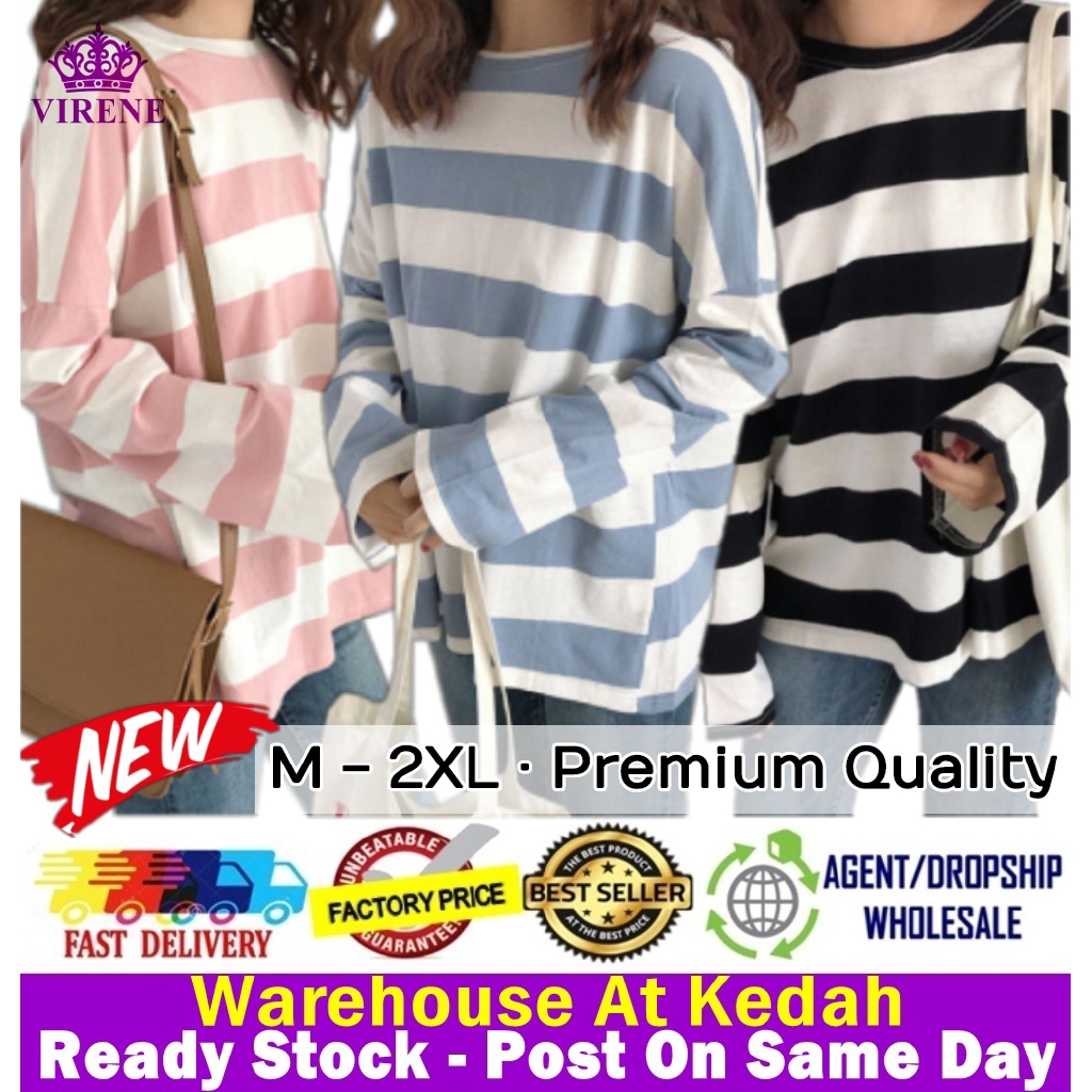 Virene Korean Fashion Plus Size Striped Shirt Fashion Casual Loose Tops Long Sleeve T Shirt Baju Lengan Panjang 221104 Shopee Malaysia