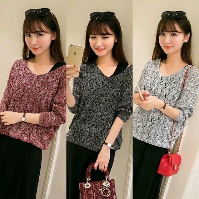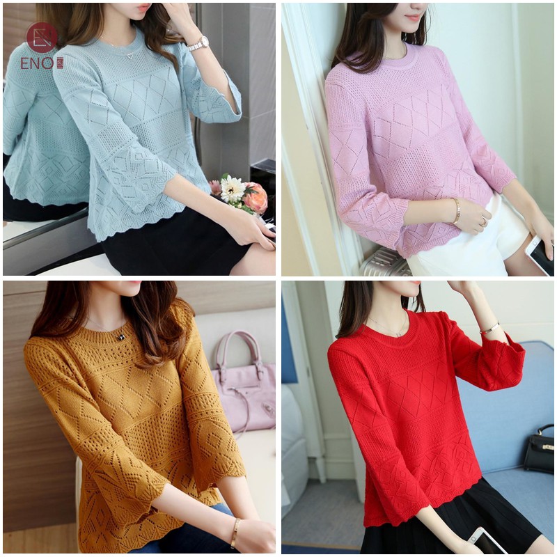 Eno Korean Knitted Sweater Loose Top Labuh Knitted Shirt Borong Baju Bundle Japanese Top Peplum Blouse Labuh Shopee Malaysia