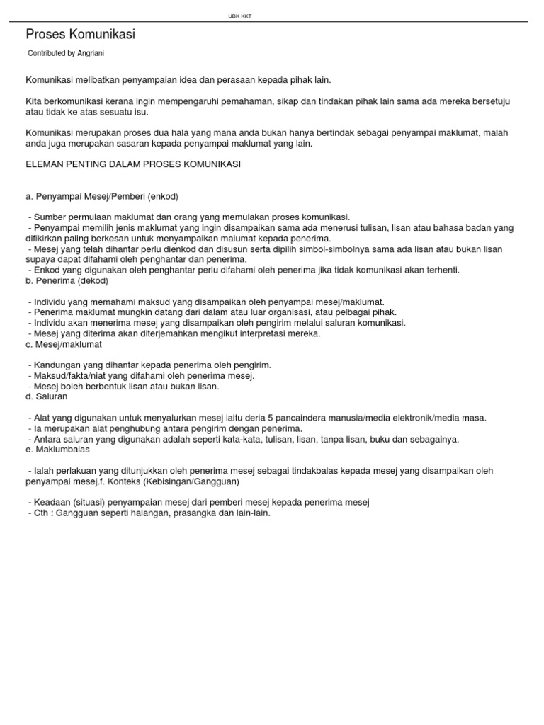 HURAIAN DALAM BENTUK PROSES KOMUNIKASI ELEMEN-ELEMEN DALAM PROSES KOMUNIKASI. Email protected 6 372018 KOMUNIKASI qKomunikasi didefinisikan oleh Bartol 1998 sebagai pertukaran maklumat mesej antara manusia bagi tujuan penyampaian maksud yang sama. Pada intinya proses difusi adalah proses keputusan untuk menerima atau menolaknya.
